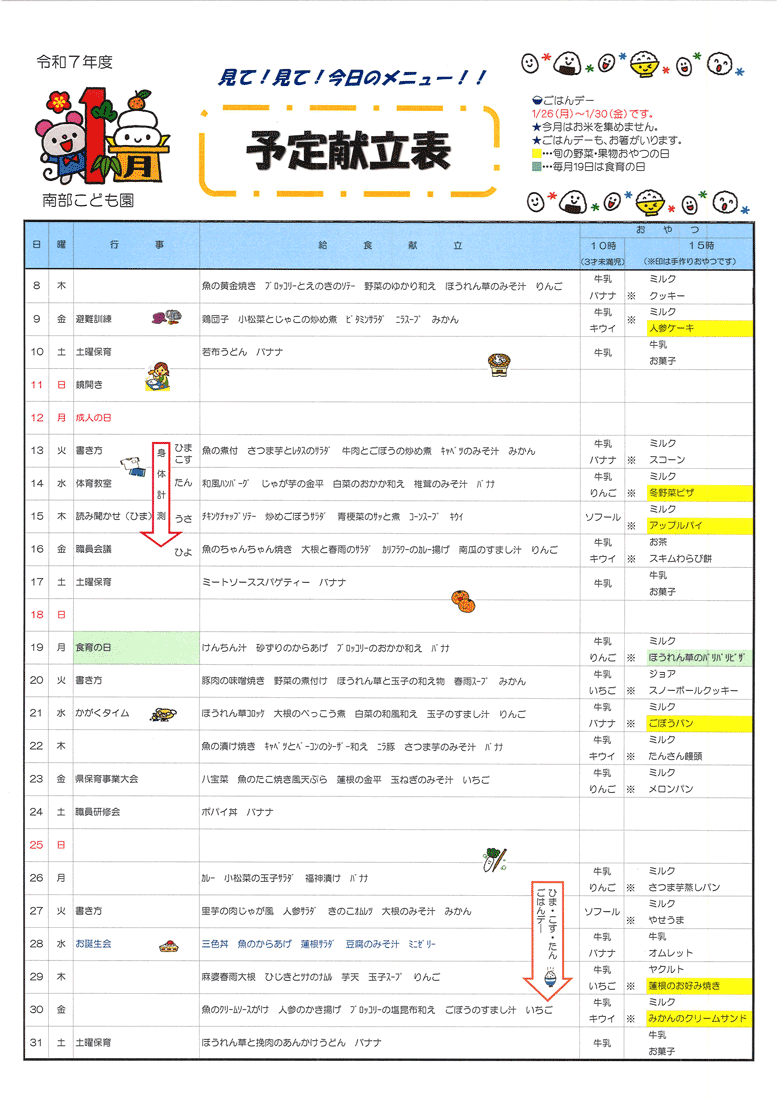 予定献立2026年1月